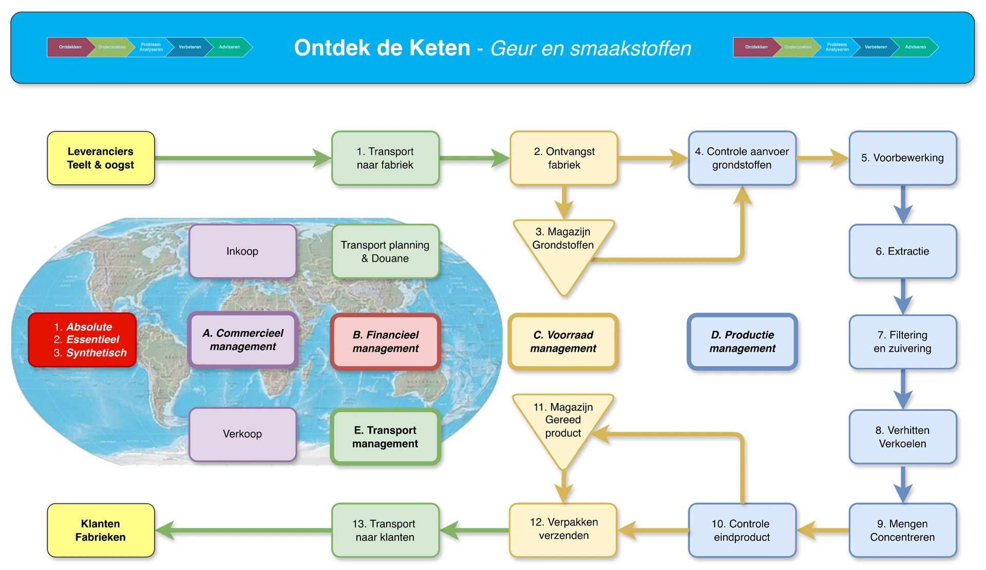 Door in gelijke teams 3 opdrachten op te lossen ontrafelen ze stap voor stap de keten achter een wereld die we elke dag ruiken en proeven.